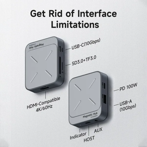 Hagibis Magnetic USB C Hub Type-C Multiport Adapter Docking Station 4K HDMI 100W PD For Macbook iPhone 16/15 Pro Thunderbolt 4