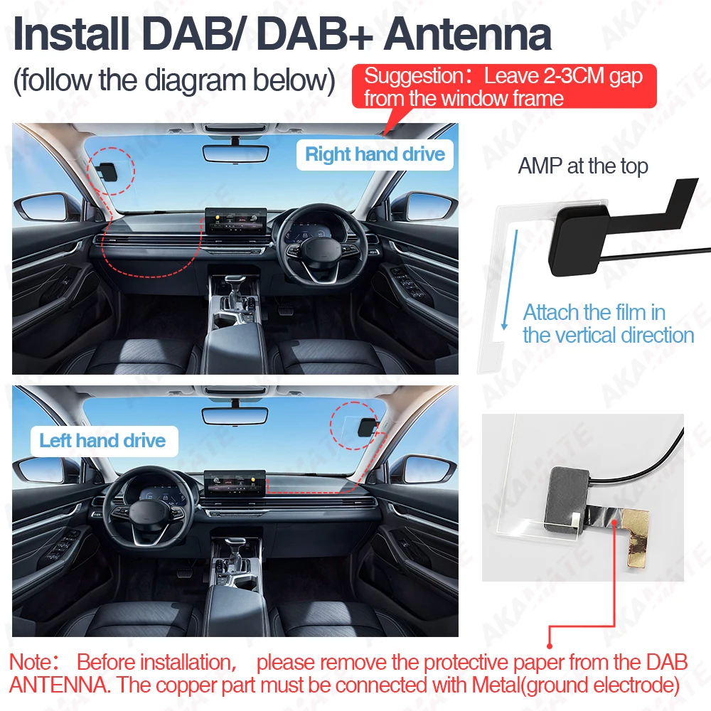 Note:Before installation,please remove the protective paper from the DAB ANTENNA. The copper part must be connected with Metal(ground electrode).