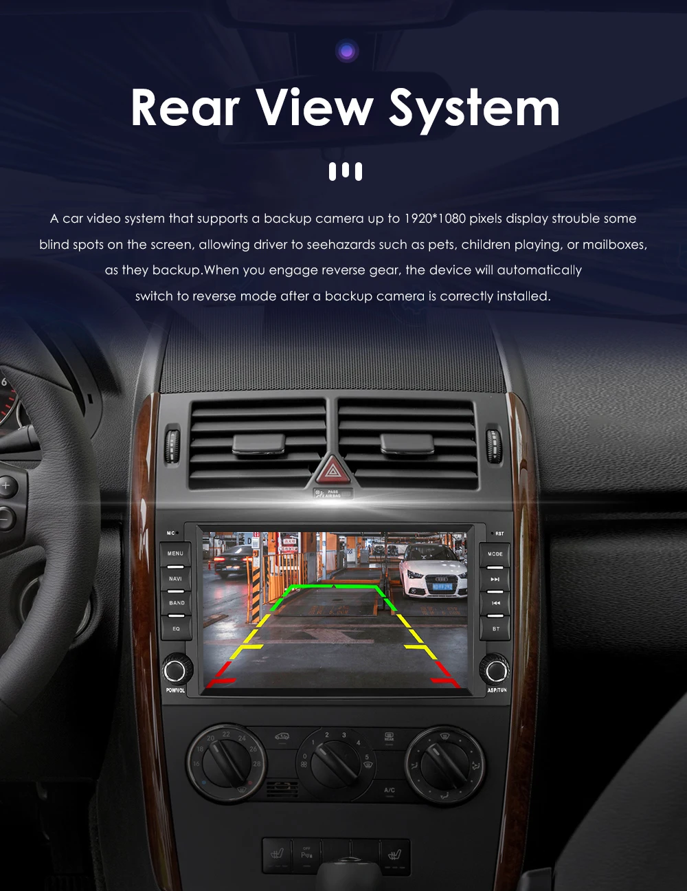 The car radios support reverse rear view display. When the car is in reverse mode, the radio will immediately switch to the rear screen of the car to ensure your driving safety.
